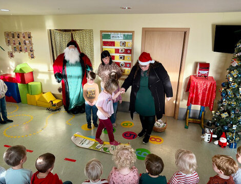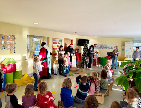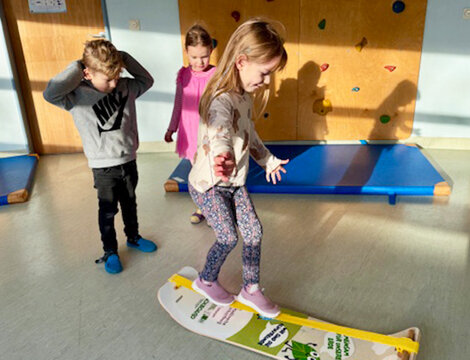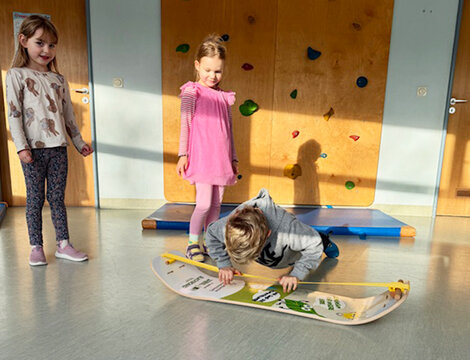 Die Kinder der GVS-Kita “Am Bergeshang” bedankten sich beispielsweise mit einem kleinen Konzert und erhielten als Weihnachtsgeschenk ein Slack-Board. Dieses wurde von den Kindern sofort ausprobiert, wobei sie spielerisch ihre Feinmotorik und ihr Gleichgewicht trainieren konnten.