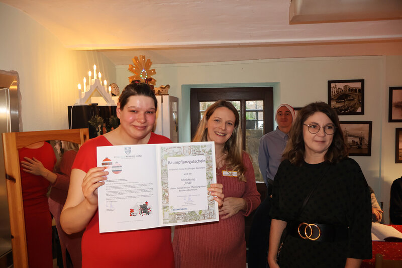 Ein besonderer Moment war die Übergabe eines Apfelbaums durch Nadja Böhnstedt als Vertreterin des Bürgermeisters – ein symbolträchtiges Geschenk, das für Wachstum, Beständigkeit und Gemeinschaft steht. Der Baum wird im Frühjahr gepflanzt.
