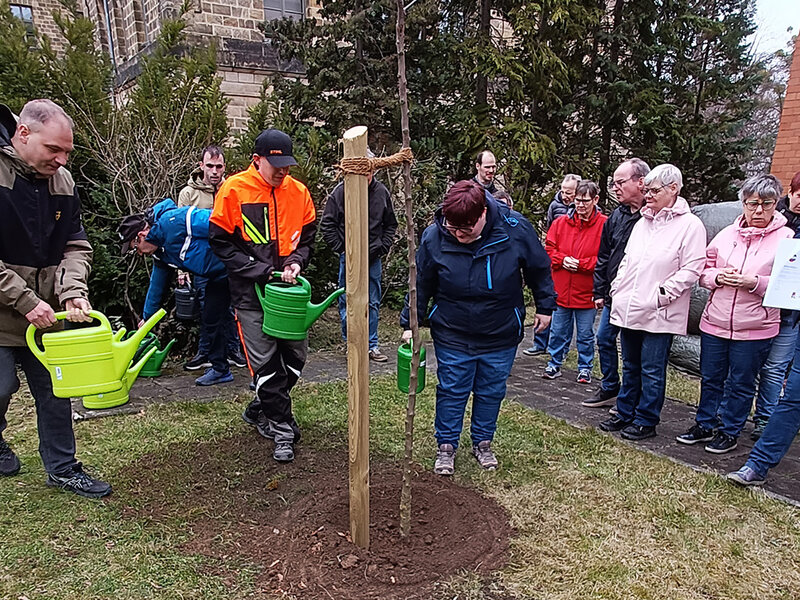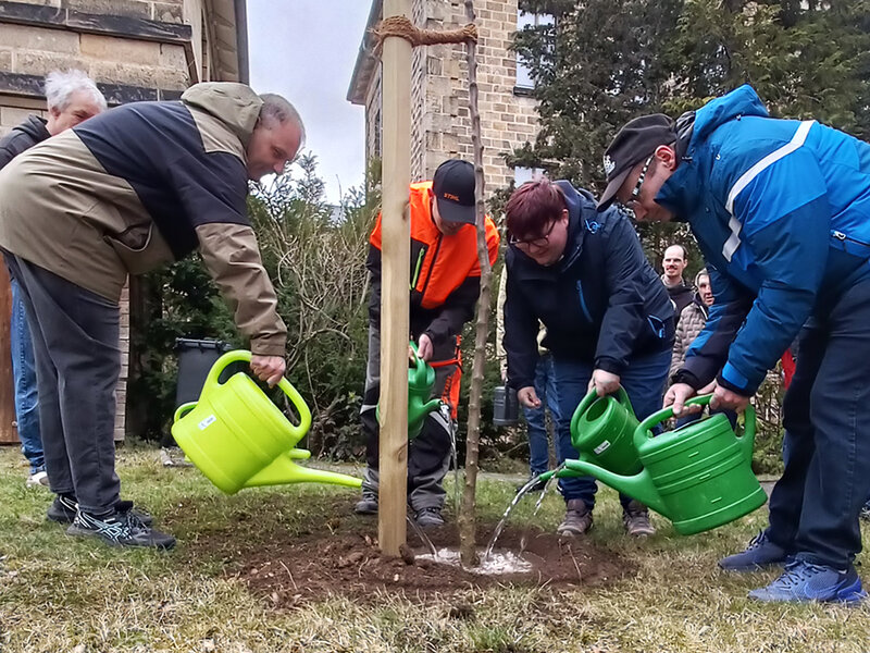 Gemeinsam mit Mitarbeitenden des Bauhofs wurde der Baum kürzlich gepflanzt. Dabei stand nicht nur die fachgerechte Umsetzung im Mittelpunkt, sondern vor allem das gemeinsame Erlebnis. Die Bewohnerinnen und Bewohner der Einrichtung waren aktiv beteiligt und konnten den Apfelbaum selbst angießen – ein Moment, der für große Freude und sichtbaren Stolz sorgte.