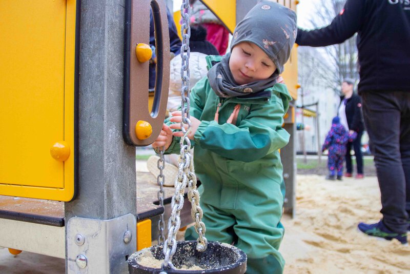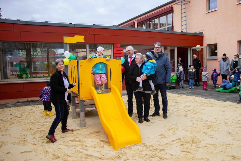 Das neue Spielgerät, bestehend aus einer kleinen Rutsche, Kletteranregungen und einem Seilzug, wurde von den Kindern mit großer Begeisterung in Empfang genommen. Nun haben sie eine neue Möglichkeit, ihre motorischen Fähigkeiten zu entwickeln und ihre Fantasie auszuleben. Aber nicht nur das Spielturm-Set wurde erneuert, auch der Sandbereich ringsherum erhielt eine Frischekur. Dadurch stehen den Kindern im Krippenbereich ab sofort zahlreiche Spiel- und Entdeckungsmöglichkeiten zur Verfügung.