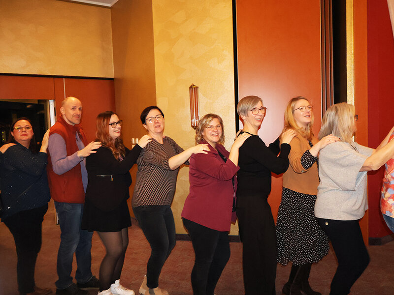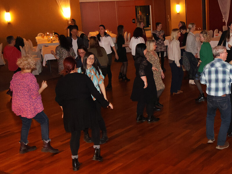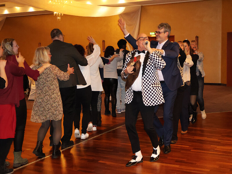 Nach dem offiziellen Teil wurde in angenehmer Atmosphäre gemeinsam angestoßen. Bei leckerem Essen und Getränken rückten alle näher zusammen. Für eine besondere Auflockerung sorgte eine schwungvolle Polonaise, angeführt von unserem hauseigenen Entertainer Roland Jacobi, bevor anschließend das Tanzbein geschwungen wurde.