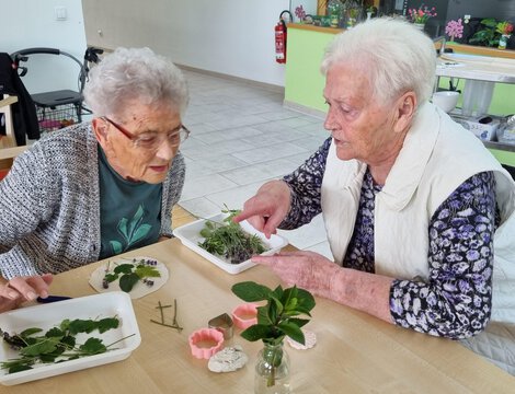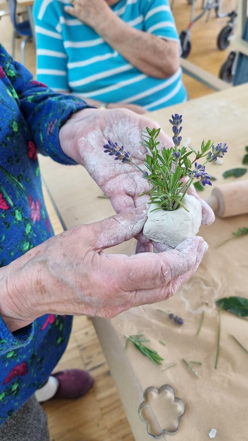 Am Mittwoch wurden Kräuter-Duft-Anhänger mit Lavendel, Rosmarin, Pfefferminze und Thymian hergestellt. Jeder Bewohner hatte die Möglichkeit seinen eigenen Duftanhänger kreativ zu gestallten.