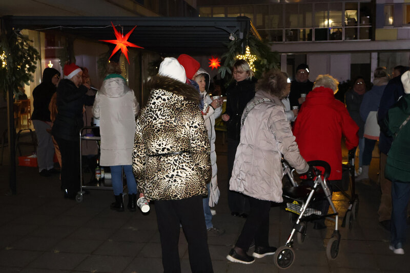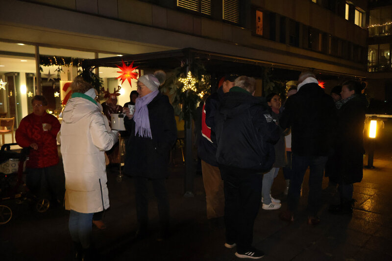 Am Abend der Fenstereröffnung fanden sich neben vielen Anwohnerinnen und Anwohnern auch die Bewohnerinnen und Bewohner sowohl der Wohnanlage als auch des Seniorenzentrums zusammen. Unsere „Weihnachtswichtel“ sorgten mit Glühwein, Kinderpunsch und Gebäck für das leibliche Wohl und trugen so zu einem stimmungsvollen Beisammensein bei.