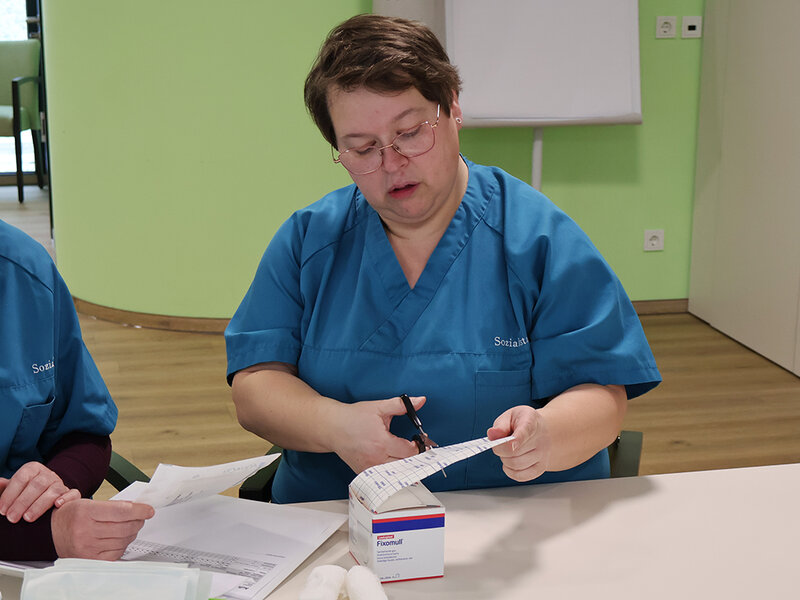 Auch Sabine Gebauer, die seit dem 1. September 2018 in unserer GVS-Sozialstation tätig ist, hat sich fachlich weiterentwickelt: Anfang 2023 schloss sie ihre Fortbildung zur Wundexpertin ab.